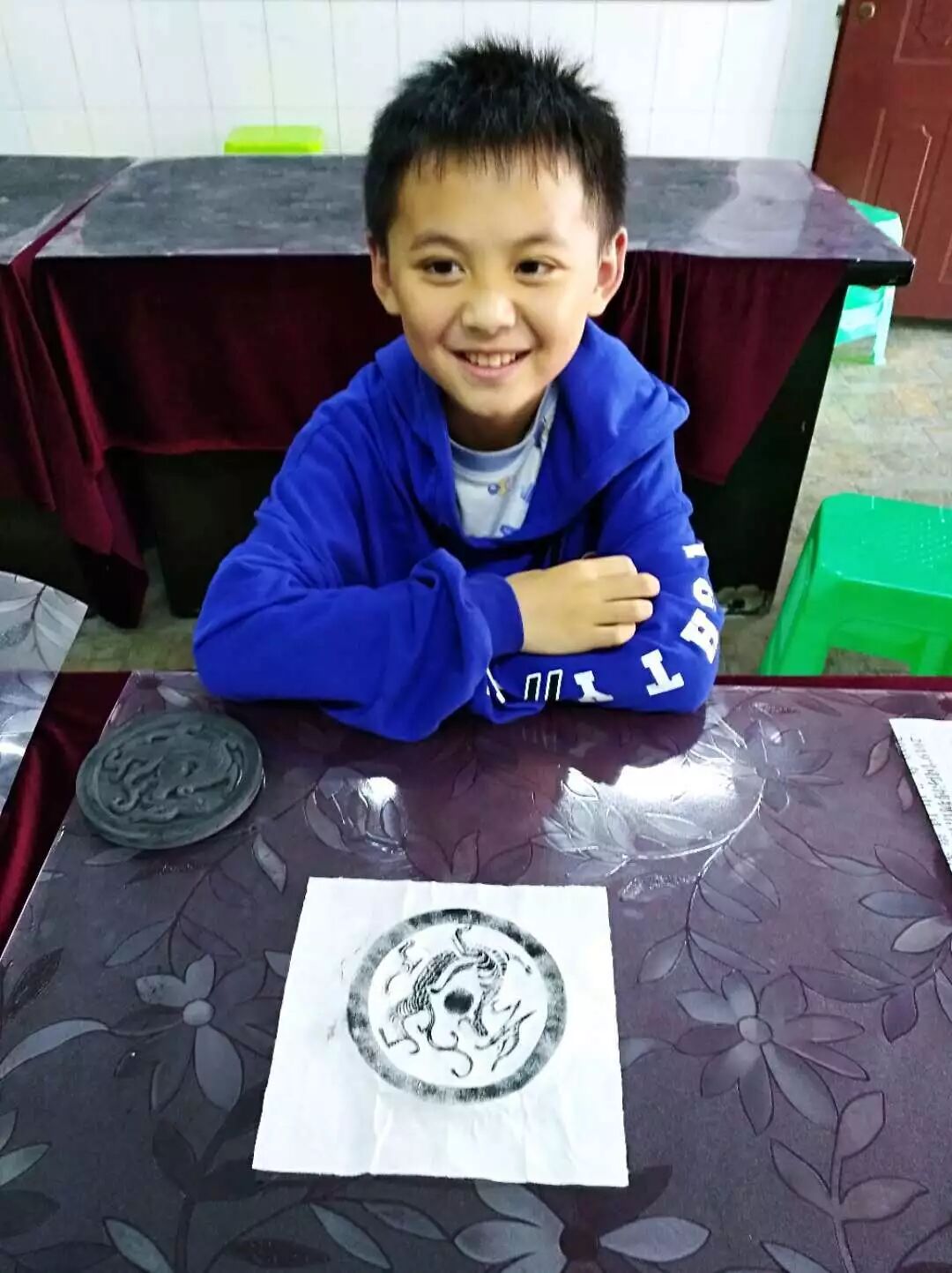 同学们展示自己制作的拓片