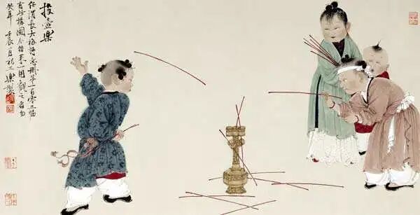 击鼓传花,也称传彩球,汉族民间游戏。数十人围成一个圆圈席地而坐,一人蒙眼以槌击鼓。鼓响时,开始传花,鼓声停,持花者根据抽取花签内容即兴表演。