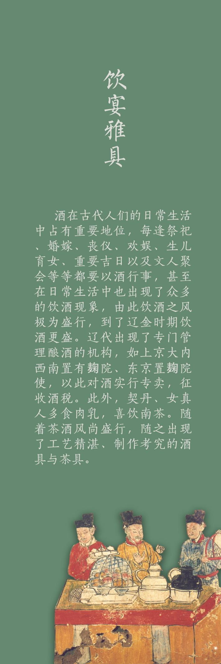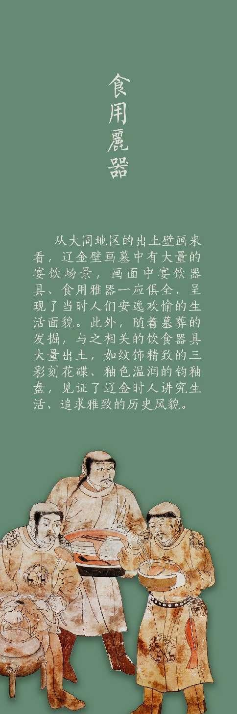 《西京印迹---大同辽金元文物展》以民族融合为主题,精选大同市博物馆馆藏辽金元时期珍贵文物,从不同角度为观众讲述了辽金元时期人们春夏耕作、秋冬射猎、茶酒饮宴、家居逸乐的生活百态,奔放豪爽的游牧民族特质与内敛儒雅的中原文化气息相汇相融、碰撞生息,共同勾勒出辽金元时期西京大同民族融合的盛世风貌。
