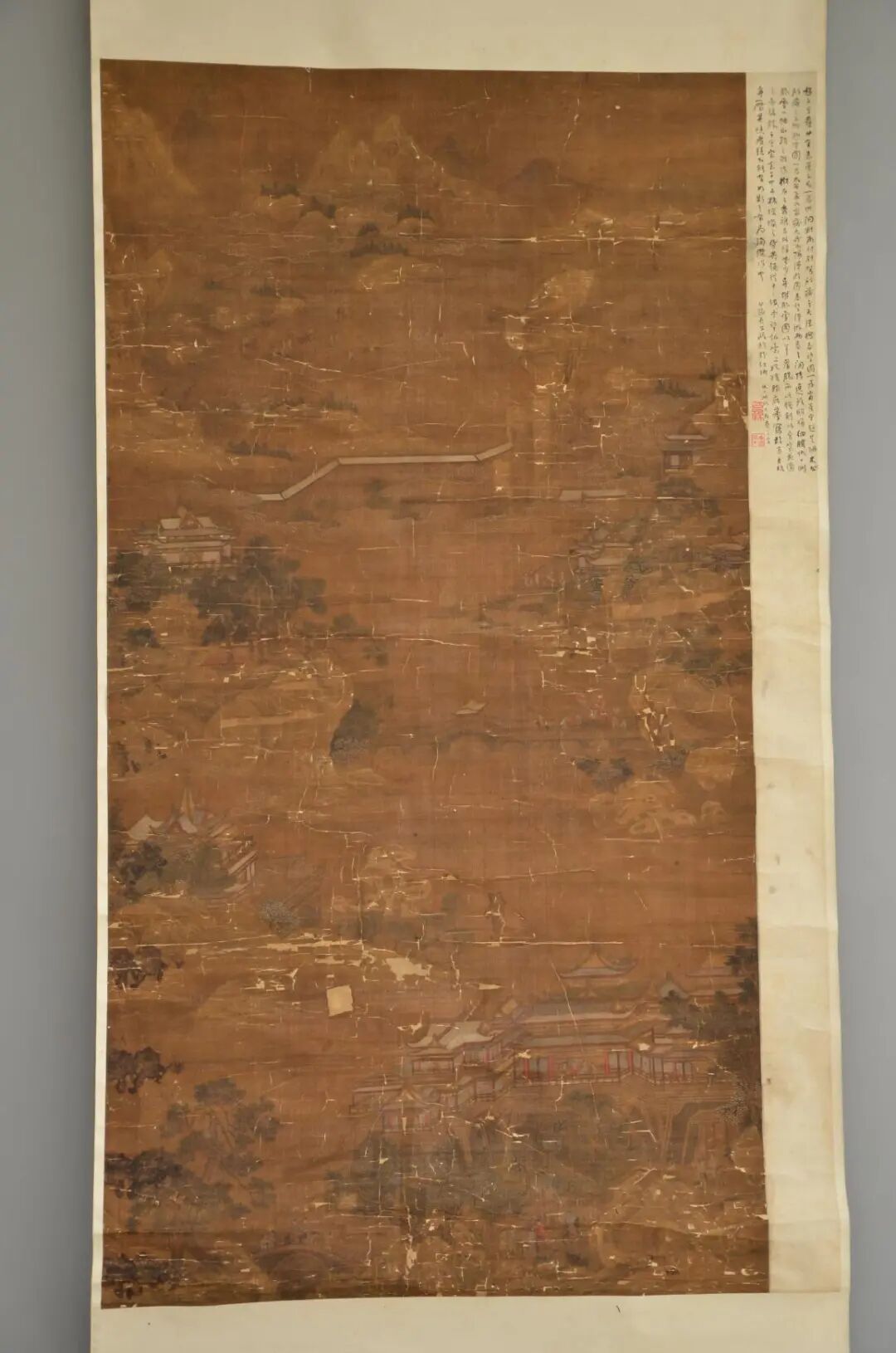 赵千里,名伯驹,宗室,宋太祖七世孙,擅长金碧山水,取法唐代李思训父子,而趋于精密,笔法秀劲工致,精于楼阁、人物、花卉、禽兽、舟车,界画尽工细之妙,上林图为工笔设色金碧山水界画,描绘上林苑情景,宫室楼台,错落其中,画册有近代著名书法家和革命家公孙长子(余切)鉴赏题跋,谓之“形肖自非身历其境者,绝不能有如斯之布局,洵杰作也”。